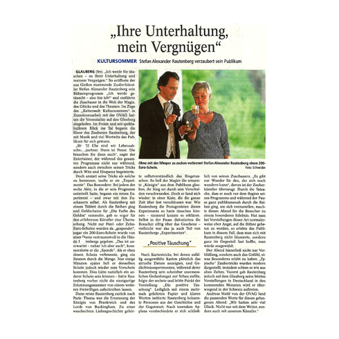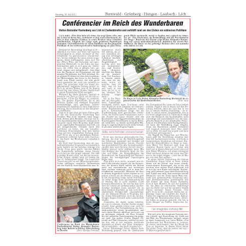 "Ich werde Sie täuschen - zu Ihrer Unterhaltung und zu meinem Vergnügen." So eröffnete der aus Gießen stammende Zauberkünstler Stefan Alexander Rautenberg sein Bühnenprogramm und entführte die Zuschauer in die Welt der Magie, des Glücks und des Theaters...